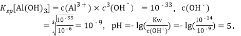 (4)Fe(OH)3和Al(OH)3类型相同,Fe(OH)3 的Ksp比Al(OH)3小,为了使它们完全沉淀,用Al(OH)3的Ksp进行计算,
