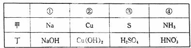 | 丁 | NaOH | Cu(OH)2 | H2SO4 | HNO3 |