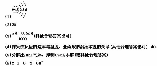 (6)在某强酸性混合稀土溶液中加入H2O2,调节pH≈3。Ce3+通过下列反应形成Ce(OH)4沉淀得以分离。完成反应的离子方程式: