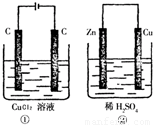 C、①相当于电解氯化铜本身,②相当于锌和硫酸中的氢离子反应;