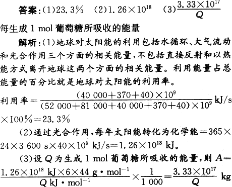 (3)ÿÄêÓÉÂÌɫֲÎïͨ¹ý¹âºÏ×÷ÓÃ(6CO2£«6H2O¡úC6H12O6£«6O2)ΪÎÒÃÇÉú´æµÄ»·¾³³ýÈ¥¶þÑõ»¯Ì¼µÄÖÊÁ¿ÎªA£®ÊÔ¸ù¾ÝÄÜÁ¿¹ØÏµÁгöAµÄ¼ÆËãʽ£®(ÁÐʽÖÐȱÉÙµÄÊý¾ÝÓ÷ûºÅQ±íʾ)