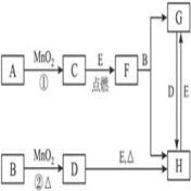 试题分析:A为H2O2;B为浓盐酸;C为O2;D为Cl2;E为Fe;F为Fe3O4;G为FeCl2;H为FeCl3。