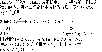 取Na2CO3和NaHCO3的混合物10 g,加热到质量不再改变为止,剩余固体质量为6.9 g.下列说法正确的是 | |