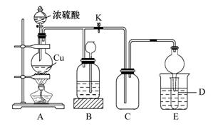装置E中试管D内盛有品红溶液,当C中气体集满后,D中有可能观察到的现象是__________________________________,为避免实验装置D有可能造成的环境污染,可用浸有NaOH溶液的棉花团塞在试管口,其反应原理是_________(用离子方程式表示)。