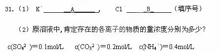 (2)原溶液中,肯定存在的各离子的物质的量浓度分别为多少?
