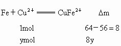 ,向该溶液中加入足量的铁粉,充分作用后,再过滤,其残渣质量小于加入铁粉的质量,则x∶y