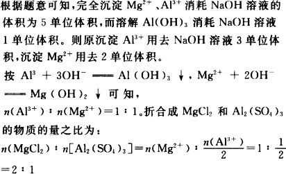 向某硫酸铝和硫酸镁的混合溶液中逐滴加入2 mol·L-1的NaOH溶液,生成沉淀的质量m与加入NaOH溶液体积的关系如图所示,则原混合溶液中MgSO4与Al2(SO4)3物质的量浓度之比为
