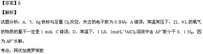 D.常温下,1 L0.1mol·L-1AlCl3溶液中含Al3+数为0.1 NA