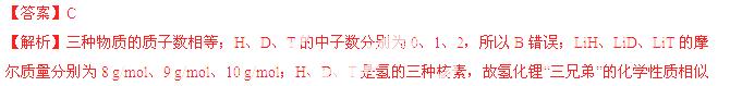 “神舟七号”所用动力燃料之一为氢化锂“三兄弟”——LiH、LiD、LiT.有关下列叙述中正确的是 ( )