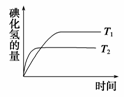 2HI(g)。在温度T1和T2时,产物的量与反应时间的关系如图所示。符合如图所示的正确判断是( )