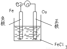 (2)将铜片和铁片用导线连接后插入三氯化铁溶液中,也有电流通过电流表.画出该电池结构的示意图,在图上标出正、负极,电解质和电子流向