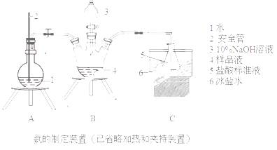 ①氨的测定:精确称取wgX,加适量水溶解,注入如图所示的三颈瓶中,然后逐滴加入足量10%NaOH溶液,通入水蒸气,将样品液中的氨全部蒸出,用V1mLc1 mol·L—1的盐酸标准溶液吸收。蒸氨结束后取下接收瓶,用c2 mol·L—1NaOH标准溶液滴定过剩的HCl,到终点时消耗V2mLNaOH溶液。