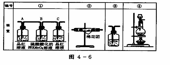 2SO2↑十CO2↑十2H2O↑。酸性KMnO4溶液可以吸收SO2,试用图4-6所示各装置设计一个实验,验证上述反应所产生的各种产物。