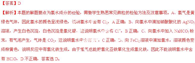 化的AgNO3溶液,产生白色沉淀,说明氯水中含有Cl-