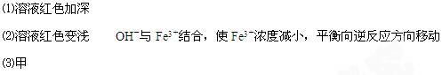 £¨12·Ö£©ÏòÊ¢ÓÐ5 mL 0.005 mol/L FeCl3ÈÜÒºµÄÊÔ¹ÜÖмÓÈë5 mL 0.01 mol/L KSCN ÈÜÒº£¬ÈÜÒº³ÊºìÉ«¡£½«ÉÏÊöÈÜÒº¾ù·ÖÖÃÓڼס¢ÒÒÁ½Ö§ÊÔ¹ÜÖУ¬Ïò¼×ÊÔ¹ÜÖмÓÈë4µÎ±¥ºÍFeCl3ÈÜÒº£¬ÏòÒÒÊÔ¹ÜÖмÓÈë4µÎŨKSCNÈÜÒº£¬³ä·ÖÕñµ´£¬¹Û²ìÈÜÒºÑÕÉ«±ä»¯¡£È»ºóÔÙ·Ö±ðÏòÉÏÊöÁ½Ö§ÊÔ¹ÜÖеμÓ5µÎ0.5 mol/L NaOHÈÜÒº£¬¹Û²ìÏÖÏ󲢻شðÏÂÁÐÎÊÌâ¡£
