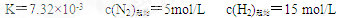 2NH3(g)。在一定条件下达到平衡时,各物质的浓度是c(N2)=3mol/L,c(H2)=9mol/L,c(NH3)=4mol/L,求该温度时的平衡常数及N2、H2的起始浓度。
