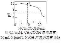 D.右图中a点溶液中各离子浓度的关系是:c(OH-)=c(H+)+c(CH3COO-)+2c(CH3COOH)