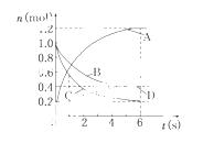 D.反应进行到6 s时,各物质的反应速率相等