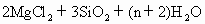 三硅酸镁(2MgO×3SiO2×nH2O)可用于治疗胃溃疡,已知该物质的溶解度小(属不溶性化合物),当胃酸的酸度大于溃疡部分所能承受的酸度时,三硅酸镁有明显的反应。