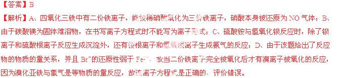 | A | Fe3O4与稀硝酸反应:2Fe3O4+18H+===6Fe3++H2↑+8H2O | 正确 |