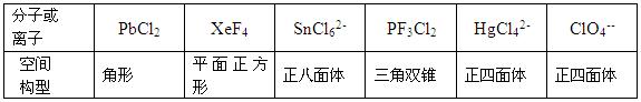 | 分子或离子 | PbCl2 | XeF4 | SnCl62- | PF3Cl2 | Hg | ClO4-- |