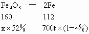 某炼铁厂用含的赤铁矿为原料,若每天生产含碳4%的生铁700t,问需该种赤铁矿多少吨.