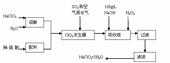 亚氯酸钠(NaClO2)是一种重要的含氯消毒剂,主要用于水的消毒以及砂糖、油脂的漂白与杀菌。以下是过氧化氢法生产亚氯酸钠的工艺流程图: