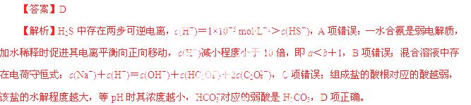 A.pH=5的H2S溶液中,c(H+)=c(HS-)=1×10-5 mol·L-1