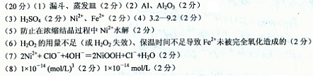 (7) NiSO4在强碱溶液中用次氯酸钠氧化,可以制得碱性镍镉电池电极材料——NiOOH。该反应的离子方程式___ 。