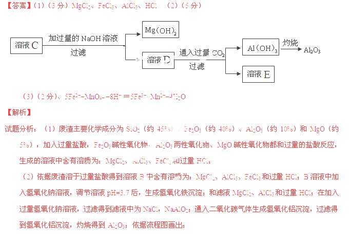 成“溶液C”到“Al2O3”的流程(注明试剂、条件和操作) 。