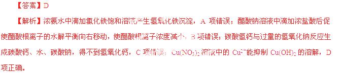 D.25 ℃时Cu(OH)2在水中的溶解度大于其在Cu(NO3)2溶液中的溶解度