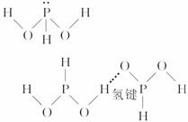 ⑥H3PO2分子的结构如下图所示:两个O原子和P—H键中的H原子位于三角锥形的三个顶角上,从结构图可知:H3PO2分子中O—H的H与另一个O相距较远,所以不可能形成分子内氢键,故H3PO2分子间可形成氢键,与P结合的H不能形成氢键,如下图所示。