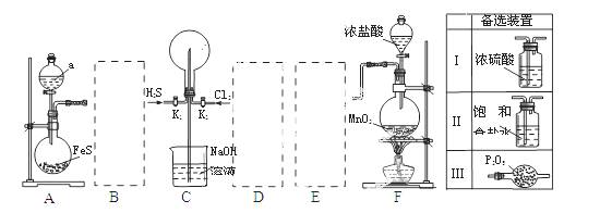 某学生利用以下装置探究喷泉实验。其中A、F分别为硫化氢和氯气的发生装置,C为纯净干燥的氯气与硫化氢反应的装置。