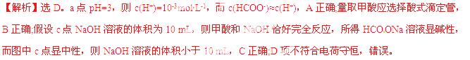 D.在a、c间任一点,溶液中一定都有c(Na+)>c(HCOO-)>c(H+)>