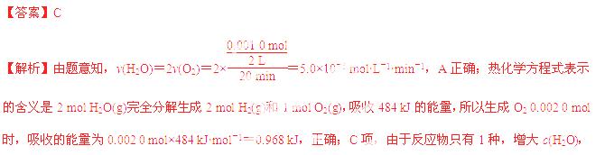 2H2(g)+O2(g) ΔH=+484 kJ·mol-1,不同时间产生O2的物质的量见下表:
