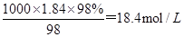 解析试题分析:(1)浓H2SO4的物质的量浓度c=