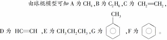 A~G是几种烃的分子球棍模型(如图),据此回答下列问题: