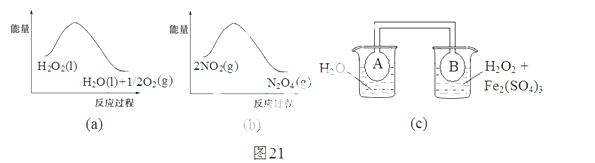 (2)利用图21(a)和21(b)中的信息,按图21(c)装置(连能的A、B瓶中已充有NO2气体)进行实验。可观察到B瓶中气体颜色比A瓶中的_________(填“深”或“浅”),其原因是______________________________________________________。