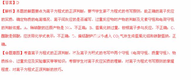 D.向NaAlO2溶液中通入过量CO2制Al(OH)3:CO2+AlO2-+2H2O=Al(OH)3↓+HCO3-