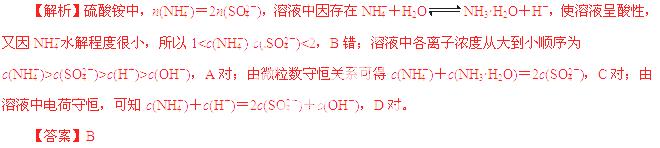 硫酸铵溶液中离子浓度关系不正确的是 ( )