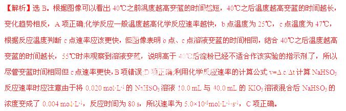 液在不同温度下均可被过量KIO3氧化,当NaHSO3完全消耗即有I2析出,依据I2析出所需时间可以求得NaHSO3的反应速率。将浓度
