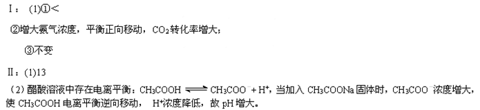 Ⅰ:(1)工业生产尿素的原理是以NH3和CO2为原料合成尿素[CO(NH2)2],反应的化学方程式为:2NH3(g) +CO2(g)