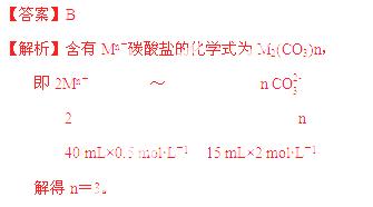 将15 mL 2 mol·L-1 Na2CO3溶液逐滴加入到40 mL 0.5 mol·L-1 MCln盐溶液中,恰好将溶液中的Mn+离子完全沉淀为碳酸盐,则MCln中n值是