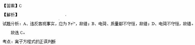 D.铜与稀硝酸反应 Cu + 8H+ + 2NO3ˉ= Cu2+ + 2NO↑ + 4H2O