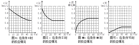试题分析:根据图像可知图I、图II平衡时A的浓度是相同的,但达到平衡的时间不同,又因为反应前后体积不变,这说明反应温度相同,压强不相同或使用了催化剂,A不正确,B正确;条件III时A的平衡转化率是0.6,所以生成C的浓度是0.3mol/L,C不正确;条件IV和条件II相比较,平衡时的状态是相同的,且达到平衡的时间也是相同的,所以D不正确,答案选B。
