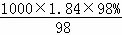 | 解答: | 解:98%的浓H2SO4的物资的量浓度为c= 故选A. |