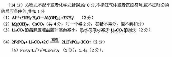 (4)写出在高温下生成磷酸亚铁锂的化学方程式 。
