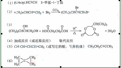 (5)链烃B是A的同分异构体,分子中的所有碳原子共平面,其催化氢化产物为正戊烷,写出B所有可能的结构简式