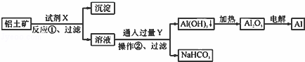 用铝土矿(主要成分为Al2O3,含Fe2O3杂质)为原料冶炼铝的工艺流程如下:下列叙述正确的是( )