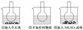 如图所示三个烧瓶中分别装入含酚酞的0.01 mol/L CH3COONa溶液,并分别放置在盛有水的烧杯中,然后向烧杯①中加入生石灰,向烧杯③中加入NH4NO3晶体,烧杯②中不加任何物质。